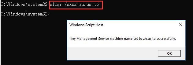 プロダクトキーの入力に成功すると、コマンドプロンプトにメッセージが表示されます。このメッセージには、プロダクトキーの登録に成功したかどうかが表示されます。登録に成功した場合、次のステップに進むことができます。登録に失敗した場合、プロダクトキーの入力に誤りがある可能性があるため、再入力する必要があります。