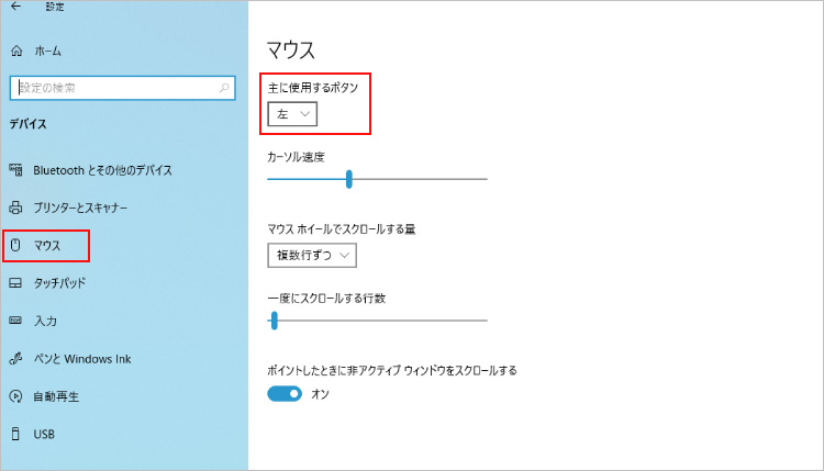 対処法2: マウスの設定を確認する