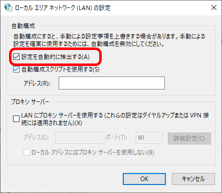 プロキシ設定の確認と修正